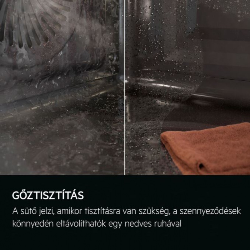 Elektronika funkciói: Display Full colour TFT touch 7.8 inches 16 x 5, 167 Variety of pre-set cooking programmes 'Assist', 14 Multi Step sütőfunkció, 25 Languages / Textdisplay, 5 Cleaning programs (steam cleaning, steam cleaning plus, descaling, drying, rinsing), maradékhő kijelzés (°C), Maradékhő használat , szervizkód, Gyors elérés gombok a standby képernyőn , hőmérséklet ajánlás, óra (napi idő), vízkeménység, Preheating (none, eco, fast), valós hőmérséklet kijelzés, állítható kijlező fényerő, elektronikus hőmérséklet szabályozó, 3 napos memória, percszámláló, maghőmérő hőmérséklet kijelzéssel, húshőmérő hőmérséklet kijelzéssel, Vezeték nélküli frissítések (kivéve alaplap), valós hőmérséklet kijelzés, Kikapcsolható sütővilágítás (menün keresztül vagy kezelőpanelen), billentyűhang, főkapcsoló, maghőmérő, maghőmérő hőmérséklet kijelzéssel, Elektronikus ajtóérzékelő, választható gyors felfűtés, programozott sütés, programozott sütés, Clock style in standby (2 versions: digital, 7 segments), okos panel, Hátralévő idő számláló, demo mód, hangjelzés, applikáció vezérlés, tisztítás figyelmeztető, Clock automatic adjustment, Eredményellenőrzés (befejezés az időtartam maradék 10%-ában) (maradékhő használata képernyőn hangjelzés), gyerekzár, auto kikapcsolás (csak sütő), állítható jelzőhang