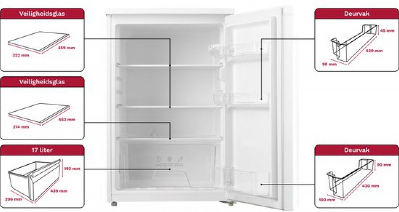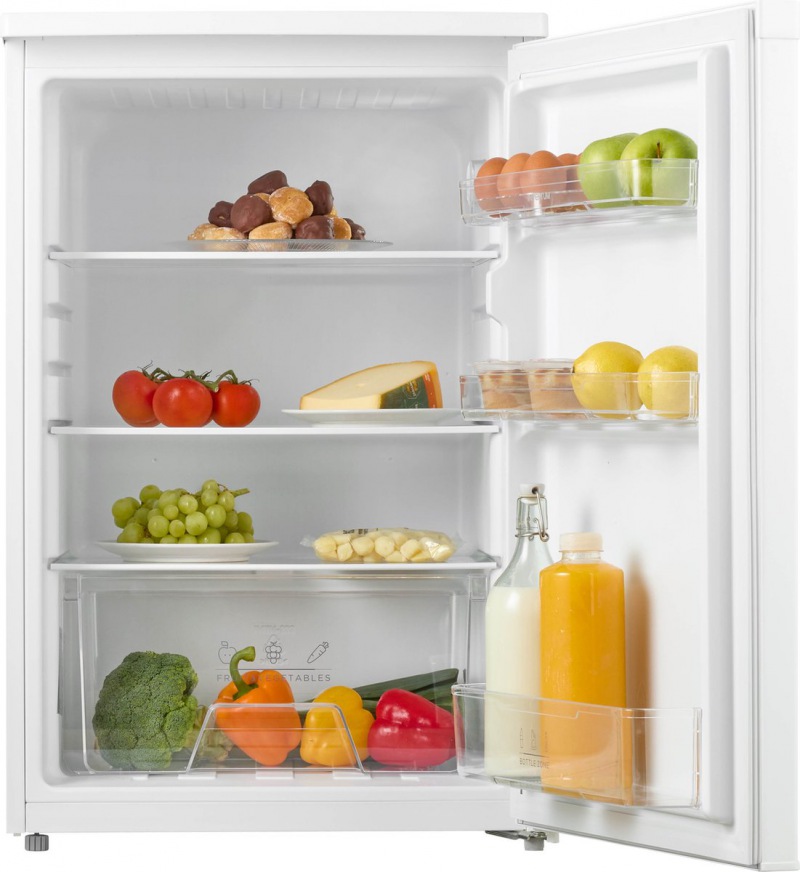 Az Inventum KK55EXP szabadon álló hűtő nettó űrtartalma 131 liter, és D energiahatékonysági besorolással rendelkezik. Ez az asztali modell három polccal és alul egy átlátszó zöldségtároló fiókkal rendelkezik. Három ajtórekesz, köztük egy cumisüvegeknek és egy tojásnak, szépen tárolja az összes élelmiszert. Ezek az alkatrészek könnyen eltávolíthatók az alapos tisztítás érdekében.