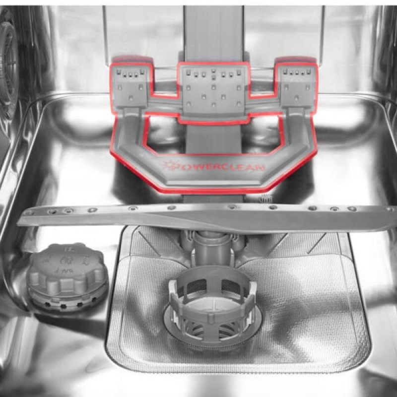 - Lehajtható tányértartó sorok az alsó kosárban, PowerClean tartókarok